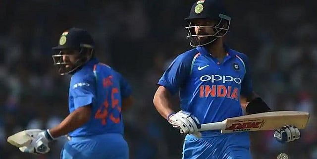 இதனையடுத்து, 237 ரன்கள் என்ற குறைவான இலக்கை விரட்டி விளையாடிய இந்திய அணிக்கு, தொடக்கத்திலேயே டக் அவுட் ஆகி அதிர்ச்சி அளித்தார் ஷிகர் தவான். அவரை தொடர்ந்து ரோகித் சர்மா உடன் கேப்டன் விராட் கோலி ஜோடி சேர்ந்தார். இந்த ஜோடி நிதானமாக விளையாடி ரன்களை சேர்த்தது. அவ்வவ்போது சில பவுண்டரிகளை மட்டும் இருவரும் அடித்தனர்.