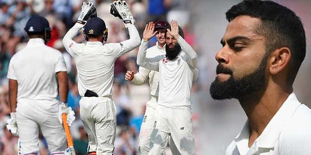 இன்னும் 5 விக்கெட் இருந்தது. இந்திய அணி வெற்றி பெற வாய்ப்புகள் இருந்தன. ஆனால். ஹர்திக் பாண்ட்யா வந்த வேகத்தில் டக் அவுட் ஆகி வெளியேறினார். பின்னர் இறங்கிய ரிஷப் பந்த் 2 பவுண்டரிகள், ஒரு சிக்ஸர் விளாசினார். ஆனால், அவரும் மொயின் அலி பந்து வீச்சில் ஆட்டமிழந்தார். மிகவும் நம்பிக்கையுடன் களத்தில் இருந்த ரகானேவும் மொயின் அலி சுழலில் சிக்கினார். இதனால், இந்தியாவின் வெற்றி அப்போதே சிதைந்தது.