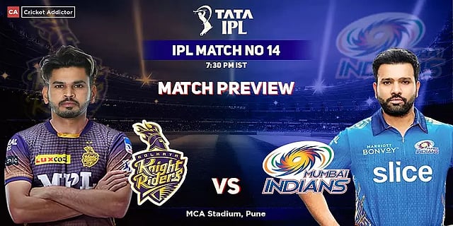 2022-ம் ஆண்டுக்கான ஐபிஎல் கிரிக்கெட் தொடரின் 15-வது சீசன் கடந்த மாதம் 26-ம் தேதி தொடங்கி மும்பை மற்றும் புனேவில் நடைபெற்று வருகிறது. இந்த தொடரில் புனே எம்சிஏ மைதானத்தில் நடைபெறும் 14-வது லீக் ஆட்டத்தில், கொல்கத்தா நைட் ரைடர்ஸ் - மும்பை இந்தியன்ஸ் அணிகள் மோதுகின்றன .