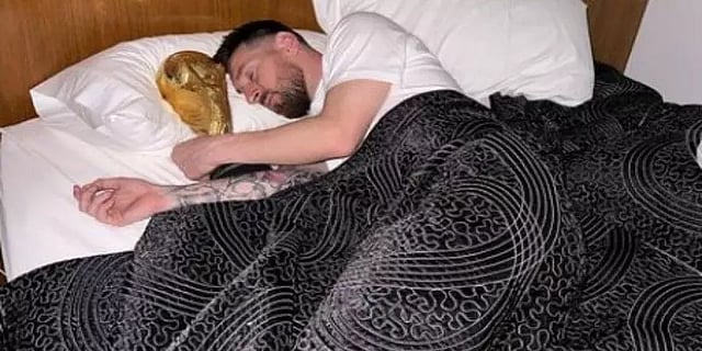 மெஸ்ஸி தனது படுக்கையறையில் உலகக்கோப்பையை கட்டிப்பிடித்தவாறு உறங்கும் புகைப்படத்தை பதிவிட்டு, ஸ்பானிஷ் மொழியில் "குட் மார்னிங்" என்று ஸ்மைலி கண்கள் எமோஜி உடன் சிரித்த முகத்துடன் எழுதி பதிவிட்டுள்ளார்.