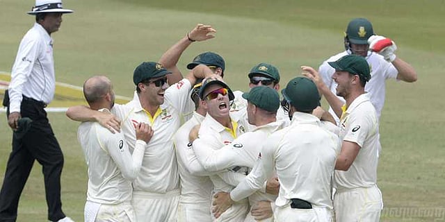 ஆஸ்திரேலிய கிரிக்கெட் அணி, தென்னாப்பிரிக்காவில் சுற்றுப்பயணம் செய்து விளையாடி வருகிறது. முதல் டெஸ்ட் போட்டி டர்பனில் நடந்துவருகிறது. முதல் இன்னிங்ஸில் ஆஸ்திரேலிய அணி 351 ரன்களும் தென்னாப்பிரிக்க அணி 162 ரன்களும் எடுத்தன. தென்னாப்பிரிக்க அணியில் டிவில்லியர்ஸ் 71 ரன்கள் எடுத்தார். மற்ற வீரர்கள் ரன்கள் எடுக்கத் திணறினர். 189 ரன்கள் முன்னிலையுடன் ஆஸ்திரேலிய அணி இரண்டாவது இன்னிங்சை தொடங்கியது. அந்த அணியின் தொடக்க ஆட்டக்காரர் பான்கிராஃப்ட் 53 ரன்களும் கேப்டன் 38 ரன்களும் எடுத்தனர். மற்றவர்கள் அடுத்தடுத்து ஆட்டமிழந்தனர்.