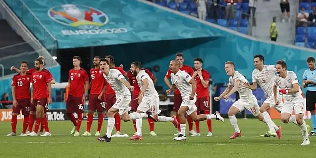 ரஷ்யாவின் செயின்ட் ஸ்பீட்டர்ஸ்பெர்க் நகரில் நேற்றிரவு நடைபெற்ற காலிறுதி போட்டியில் பெனால்டி ஷூட் அவுட் முறையில் ஸ்விட்சர்லாந்தை 3- 1 என்ற கோல்கள் கணக்கில் வீழ்த்தியது ஸ்பெயின். ஆட்டத்தின் முதல் பாதியில் ஸ்பெயின் அணி ஒரு கோலும் இரண்டாவது பாதியில் சுவிட்சர்லாந்து அணி ஒரு கோலும் அடித்திருந்தன. ஆட்டநேர முடிவில் 1-1 என சமனில் இருந்த நிலையில், கூடுதல் நேரம் வழங்கப்பட்டது. அதில் கோல் அடிக்கப்படாததால் பெனால்டி ஷூட் அவுட் முறை கடைப்பிடிக்கப்பட்டது. இதில் ஸ்பெயின் அணி 3 கோல்களும், சுவிட்சர்லாந்து ஒரு கோலும் அடித்தன. இதன்மூலம் ஸ்பெயின் அணி அரையிறுதிக்கு தகுதி பெற்றது.