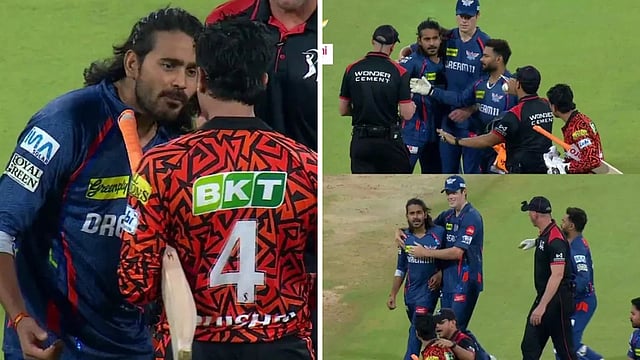 காட்டடி பேட்டிங்கை வெளிப்படுத்திய அபிஷேக் சர்மாவை வெளியேற்றிய திக்வேஷ், எப்போதும் போல ’நோட் புக்கில் கையெழுத்து போடும்’ கொண்டாட்டத்துடன் சேர்த்து ’கெளம்பு கெளம்பு, வெளியே போ’ என கைக்காட்டி உசுப்பேற்றினார். இதைப்பார்த்த அபிஷேக் சர்மா மிகுந்த கோவத்துடன் திக்வேஷ் இடம் சண்டைக்கு வர, இரண்டு வீரர்களுக்கு இடையே வாக்குவாதம் முற்றியது. இருவரும் மோதிக்கொள்ளும் விதமாக செல்ல நடுவர்கள், சக வீரர்கள் அனைவரும் சேர்ந்து தடுத்து நிறுத்தி அனுப்பிவைத்தனர். ஆனாலும் நீண்ட சடை வைத்திருக்கும் திக்வேஷை பார்த்து, பின்பக்க முடியை இழுப்பதுபோல சைகை காட்டி வெளியேறினார் அபிஷேக் சர்மா. இது சிறிதுநேரம் களத்திலேயே பரபரப்பை ஏற்படுத்தியது.