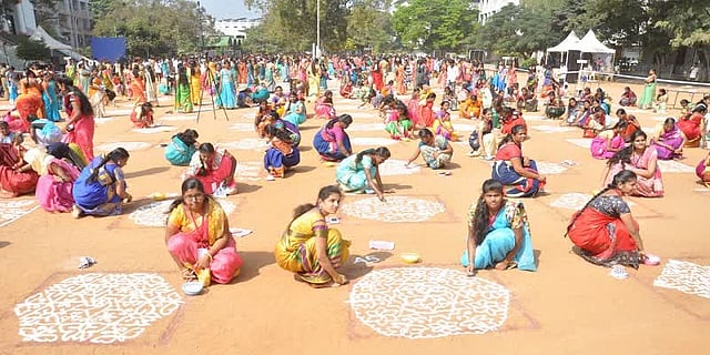 இந்நிலையில், ‘தமிழ் வழியில் வாழ்க்கையை கொண்டாடுதல்’ என்ற தலைப்பில் தனியார் நிறுவனம் மற்றும் அவினாசிலிங்கம் பல்கலைக்கழகம் சார்பில் கல்லூரி மாணவிகள் 1000பேர் கலந்துகொண்ட கோலங்கள் வரையும் நிகழ்வு வடகோவை பகுதியிலுள்ள அவினாசிலிங்கம் பல்கலைக்கழக வளாகத்தில் நடைபெற்றது.