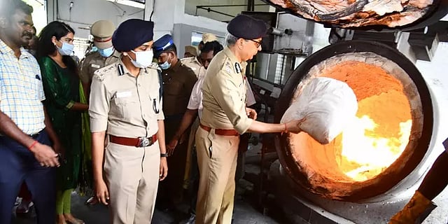 சென்னை பெருநகர பகுதிகளில் பறிமுதல் செய்யப்பட்ட 1300 கிலோ கஞ்சா போதைபொருட்கள் சென்னை பெருநகர காவல் ஆணையர் சங்கர் ஜிவால் முன்னிலையில் அழிக்கப்பட்டது.