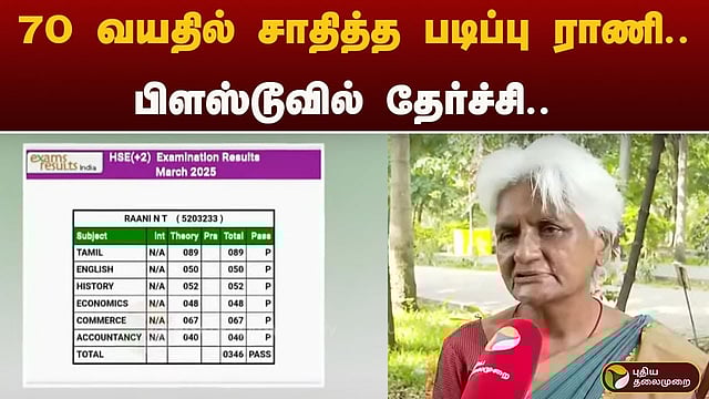 கோவையைச் சேர்ந்த 70 வயது மூதாட்டி ராணி 12 ஆம் வகுப்பு பொதுத்தேர்வில் தேர்ச்சி பெற்று அசத்தி உள்ளார்.