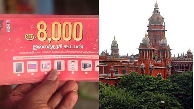 திமுக-வின் தேர்தல் அறிக்கை வாக்குறுதிப்படி, இல்லத்தரசி திட்டத்துக்கான 8,000 ரூபாய் கூப்பன்களை வினியோகித்தது தொடர்பாக வழக்குப்பதிவு செய்யப்பட்டுள்ளதாக், தேர்தல் ஆணையம், சென்னை உயர்நீதிமன்றத்தில் தெரிவித்துள்ளது. சட்டமன்ற தேர்தலை ஒட்டி, திமுக வெளியிட்ட தேர்தல் அறிக்கையில், இல்லத்தரசி திட்டத்தின் கீழ் 8,000 ஆயிரம் ரூபாய்க்கான கூப்பன்கள் வழங்கப்படும் எனவும், அதில் விருப்பப்பட்ட வீட்டு உபயோக பொருட்களை மகளிர் வாங்கிக் கொள்ளலாம் எனத் தெரிவிக்கப்பட்டிருந்தது.