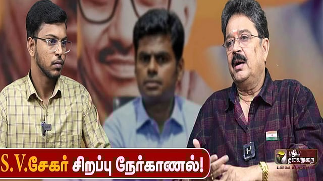 முன்னாள் சட்டமன்ற உறுப்பினரும், நடிகருமான எஸ்.வி. சேகர் புதிய தலைமுறை டிஜிட்டலுக்கு அளித்த பேட்டி... தமிழ்நாடு பாஜக தலைவர் அண்ணாமலையின் செயல்பாடு, அதிமுக பாஜக கூட்டணி முறிவு, அறவோர் முன்னேற்றக் கழகம் என பல்வேறு விஷயங்கள் குறித்து விவாதிக்கப்பட்டது.