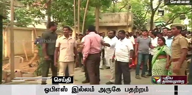சென்னை கிரின்வேஸ் சாலையில் உள்ள ஓ.பன்னீர்செல்வம் இல்லம் அருகே சி.வி.சண்முகம் ஆதரவாளர்கள் மற்றும் பன்னீர்செல்வம் ஆதரவாளர்கள் கைகலப்பில் ஈடுபட்டனர். இதனால் அங்கு பதற்றமான சூழல் நிலவி வருவதால் ஏராளமான போலீசார் குவிக்கப்பட்டு உள்ளனர். வாக்குவாதத்தின் போது சில அடையாளம் தெரியாத நபர்கள் கற்களை வீசித் தாக்குதல் நடத்தியதால், பன்னீர்செல்வம் ஆதரவாளர்கள் சிலர் காயமடைந்தனர்.
