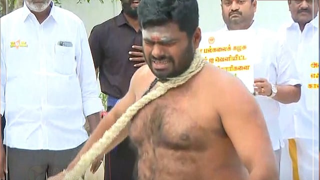 “நாங்கள் ஆர்ப்பாட்டம் செய்தால் நீங்கள் கைது பண்ணுவீர்கள். நாளையில் இருந்து ஆர்ப்பாட்டம் அப்படி நடக்காது. ஒவ்வொரு வீட்டுக்கு வெளியிலும் ஆர்ப்பாட்டம் நடக்கும். நாளை காலை 10 மணிக்கு எனக்கு நானே சாட்டையால் 6 முறை அடித்துக் கொள்ளப்போகிறேன். திமுக எனும் கட்சி தமிழகத்தில் ஆட்சியில் இருந்து அகற்றப்படும்வரை நான் செருப்புப் போடப்போவதில்லை. நாளையில் இருந்து 48 நாட்கள் விரதம் இருக்கப்போகிறேன்” எனத் தெரிவித்திருந்தார்.