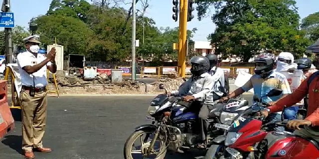சென்னை அண்ணாசாலை போக்குவரத்து காவல் உதவி ஆய்வாளர் ரசீத், சாலையில் வருபவர்களை கையெடுத்து கும்பிட்டு தயவு செய்து வெளியே வராதீர்கள் என கோரிக்கை விடுத்தார்.