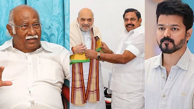 “இது என் கட்சி. நான் யாருடன் வேண்டுமானாலும் கூட்டணி அமைப்பேன்” என்று பழனிசாமி கூறிவரும் நிலையில், இந்த கூட்டணியை அமைத்தது அவரல்ல; பாஜகதான் என்று புதிய தலைமுறைக்கு அளித்த பிரத்யேக பேட்டியில் கூறியிருக்கிறார் சமீபத்தில் அக்கட்சியில் இருந்து விலகி திமுகவில் இணைந்த மூத்த அரசியல் தலைவரான அன்வர் ராஜா. “திமுக எங்கள் அரசியல் எதிரி... பாஜக கொள்கை எதிரி” என்று தொடர்ந்து கூறிவரும், தமிழக வெற்றிக் கழகத் தலைவர் நடிகர் விஜய், அதிமுக-வுக்கு மறைமுகமாக கூட்டணி அழைப்பு விடுத்துவந்தார்.