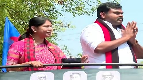 தமிழகத்தில் நடைபெறவிருக்கும் தேர்தலை முன்னிட்டு அனைத்து கட்சி தலைவர்களும் பரப்புரையில் ஈடுபட்டு வருகிறார்கள். அதன்படி, இன்று தென்காசி, வாசுதேவநல்லூர் தொகுதியில் திமுக வேட்பாளர் ராஜாவுக்காக எம்.பி. கனிமொழி வாக்கு சேகரித்தார்.