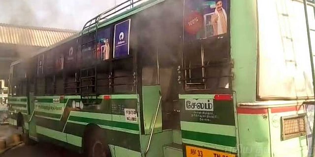 ஈரோடு பேருந்து நிலையத்தில் நிறுத்தப்பட்டிருந்தது. பேருந்தின் ஓட்டுநர் அங்கமுத்து மற்றும் நடத்துநர் பரமேஸ்வரன் ஆகிய இருவரும் டீ அருந்துவதற்காக அருகில் சென்றிருந்தனர். பேருந்தில் ஒவ்வொரு பயணிகளாய் ஏறி சீட்டில் அமர்ந்திருந்தனர். அந்தநேரத்தில் பேருந்தின் இன்ஜின் பகுதியில் இருந்து திடீரென புகை வெளியானது. புகை வெளியே வந்த சில நிமிடங்களிலேயே பேருந்து தீப்பற்றி எரிய ஆரம்பித்தது. இதனால் பேருந்தில் இருந்த பயணிகள் அலறியடித்தப்படி பேருந்தில் இருந்து கீழே இறங்கி வேகமாக ஓடினார்கள்.