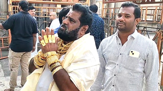 இந்நிலையில், விஜயவாடாவைச் சேர்ந்த தொழிலதிபர் சாம்பசிவ ராவ், எப்பொழுதுமே கிலோ கணக்கில் நகைகளை அணிந்து கொண்டு வெளியில் செல்வது வழக்கம். திருவண்ணாமலை அண்ணாமலையார் கோயிலுக்கு வந்த அவர், 3 கிலோ எடை ஆபரணங்களை அணிந்து கொண்டு சாமி தரிசனம் செய்தார். கோயிலில் கூடியிருந்த பக்தர்கள் அவர் அணிந்திருந்த தங்க நகைகளை பார்த்து ஆச்சரியத்துடன் ரசித்தனர்.