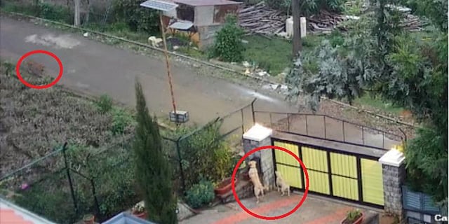 இதனால், வீட்டிலிருந்த நாய்கள் குலைத்து அலறின. ஆனால் வீட்டின் இரும்புக் கேட்டை தாண்டி வந்து சிறுத்தையால் நாய்களை பிடிக்க முடியவில்லை. அதற்குள் வீட்டில் இருந்தவர்கள் ஓடிவந்து கூச்சலிட்டதால், சிறுத்தை நாய்களை பிடிக்காமல் வந்த வழியே ஓடிவிட்டது.