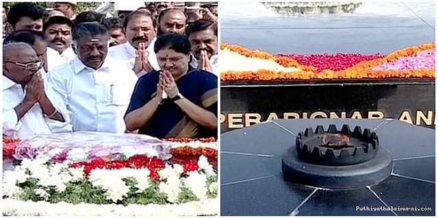 இதைத்தொடர்ந்து, பன்னீர்செல்வம், சசிகலா மற்றும் அதிமுக நிர்வாகிகள், ஜெயலலிதா நினைவிடத்திற்கு சென்றும் மரியாதை செலுத்தினர்.