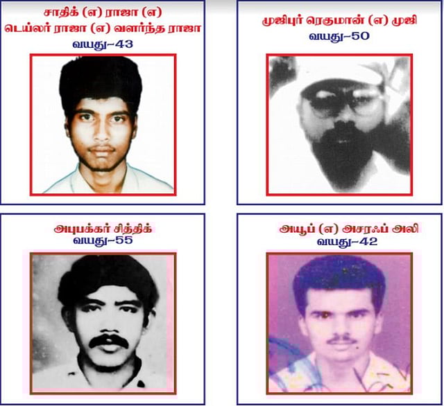 இதேபோல மதுரையில் நடந்த குண்டு வெடிப்பு உள்ளிட்ட பல்வேறு வழக்குகளில் தொடர்புடைய அபுபக்கர் சித்திக், அயூப் என்ற அஷ்ரப் அலி ஆகியோரும் கைது செய்யப்படவில்லை. மேற்கண்ட நான்கு பேரும், காவல்துறையினர் பிடியில் சிக்காமல் தலைமறைவாக உள்ளனர். மேற்கண்ட 4 பேரும் தேடப்படும் குற்றவாளிகளாக காவல்துறையினரால் அறிவிக்கப்பட்டுள்ளனர்.