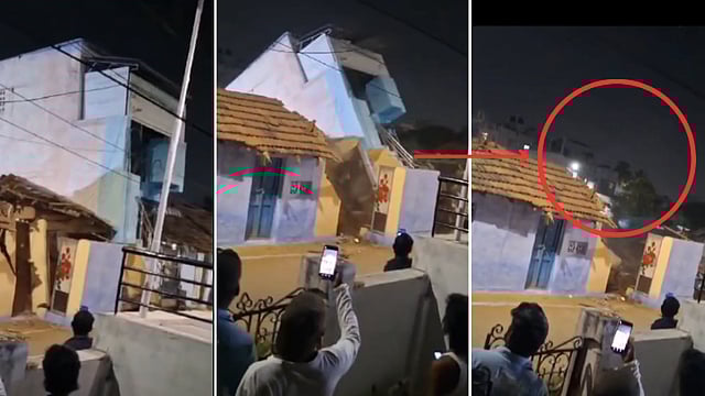 அருகில் இருந்த ஓட்டு வீடும் சேதமடைந்தது. இந்த காட்சிகளை அப்பகுதியைச் சேர்ந்த பொதுமக்கள் தங்கள் செல்ஃபோன்களில் வீடியோ காட்சிகளாக பதிவு செய்தனர்.
