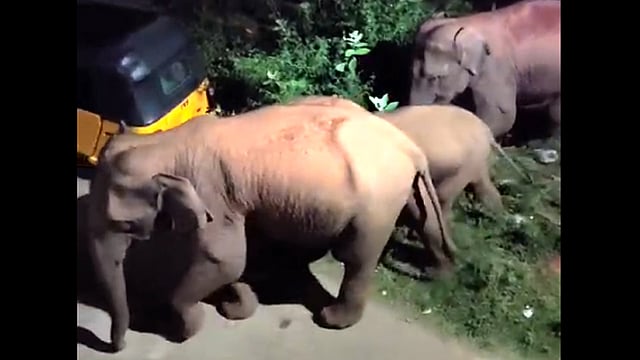மேற்குத் தொடர்ச்சி மலையை ஒட்டிய கிராமங்களில் யானைகள் அடிக்கடி வனத்தை விட்டு வெளியேறி குடியிருப்பு பகுதிகளில், தோட்டங்களில் உணவு தேடி அலைகின்றன. அந்த வகையில் கணுவயை அடுத்த திருவள்ளுவர் நகரில் இருந்து சோமையனூர் செல்லும் சாலையில் யானைகள், குட்டிகளுடன் கூட்டமாக நடமாடின. இதனை அப்பகுதியில் உள்ள குடியிருப்புவாசி ஒருவர் தனது செல்போனில் படம் பிடித்து அதை சமூக வலைதளங்களில் பகிர்ந்துள்ளார்.