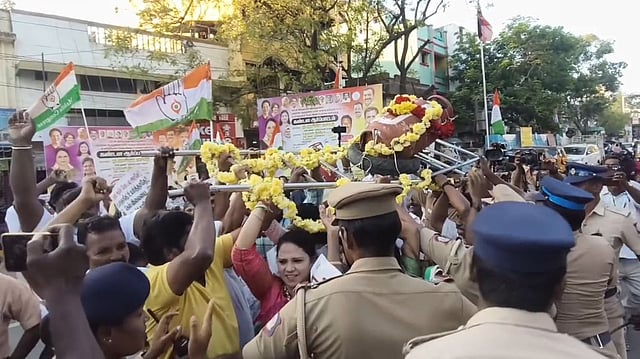 இந்த ஆர்ப்பாட்டத்தில் ஈடுபட்ட காங்கிரஸ் தொண்டர் மாலகொட்டையா என்பவர் உடல்நிலை பாதிப்பால் போராட்டக் களத்திலேயே மயங்கி விழுந்தார். இதனை அடுத்து அவரை அருகில் உள்ள தனியார் மருத்துவமனைக்கு ஆட்டோவில் அழைத்துச் சென்றனர்.