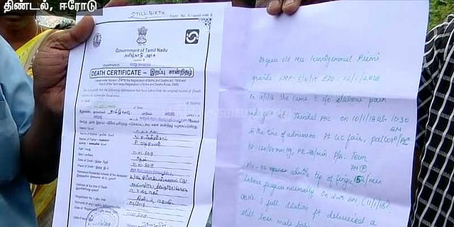 ஈரோடு அருகே ஆரம்ப சுகாதார நிலையத்தில் மருத்துவர் இல்லாமல் கர்ப்பிணிக்கு செவிலியர்கள் சிகிச்சை அளித்துள்ளனர். இதனால் பிறந்த சில நிமிடங்களில் குழந்தை இறந்ததாக குற்றச்சாட்டு எழுந்துள்ளது.