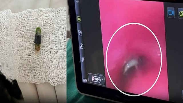 அந்த குழந்தைக்கு Fiber Optic Bronchoscopy எனப்படும் மூச்சு குழாய் ஆய்வு கருவி மூலம் பரிசோதித்த போது, குழந்தை விழுங்கிய விசில் Right Bronchus Intermedius எனப்படும் நான்காம் நிலை சிறிய மூச்சு குழாயில் ஆழமான பகுதியில் இருந்தது கண்டறியப்பட்டது. நேற்று நுரையீரல் பிரிவு பேராசிரியர் பாலமுருகன் முன்னிலையில், மருத்துவர் ஷாஜாத்தி மற்றும் மருத்துவர்கள் அடங்கிய குழு மூலம் மூன்று மணி நேரம் தீவிர முயற்சிக்கு பின் விசிலை வெற்றிகரமாக வெளியேற்றினார்கள்.