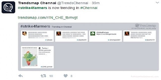 முன்னதாக டெல்லியில் போராட்டம் நடத்திய தமிழக விவசாயிகளுக்கு ஆதரவாக சமூக வளைதளங்களில் ஹேஸ்டாக்குகளை உருவாக்கி கருத்துக்கள் பகிரப்பட்டு வந்தன.