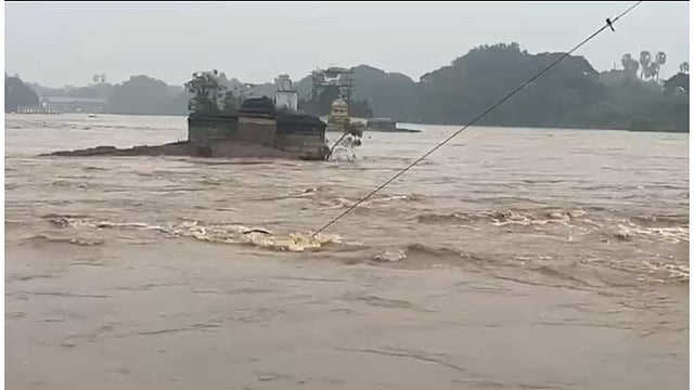 தூத்துக்குடி மாவட்டம் ஸ்ரீவைகுண்டத்தில் தாமிரபரணி வெள்ளத்தில் அடித்துச் செல்லப்பட்டு மணல் திட்டில் சிக்கிய 2 இளைஞர்கள் மீட்கப்பட்டனர்.