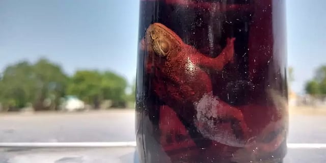 வயல் பகுதிக்கு சென்று அந்த பாட்டிலை திறந்து பாதி மதுவை கப்பில் ஊற்றிவிட்டு மீண்டும் பாட்டிலை மூடும்போது பாட்டிலின் உள்ளே ஏதோ கிடப்பதை பார்த்துள்ளார். அப்போது அந்த மது பாட்டிலில் தவளை ஒன்று மிதப்பதை கண்டு அதிர்ச்சியடைந்தார். இதைத்தொடர்ந்து அருகில் இருந்த ஒருவர் மூலம் இதுகுறித்து மதுபானக் கடைக்கு தகவல் தெரிந்துள்ளது.