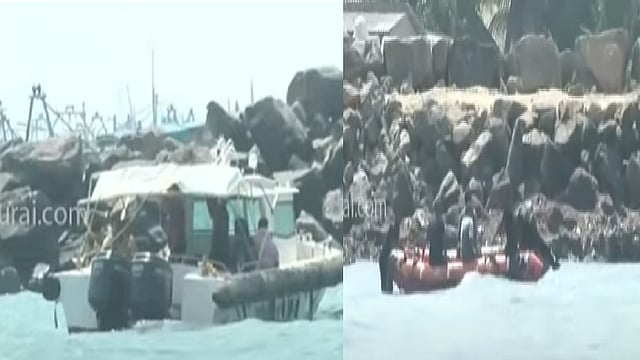 சந்தேகத்திற்கிடமான முறையில் வந்த மற்றொரு படகைச் சோதனையிட்டபோது எதுவும் சிக்கவில்லை. கடத்தல் தங்கத்தை நடுக்கடலில் வீசினார்களா என படகிலிருந்த 3 பேரை பிடித்து வருவாய் புலனாய்வுத் துறையினர் விசாரித்துவருகின்றனர். மொத்தம் 10 கோடி ரூபாய் மதிப்புலான தங்கக் கட்டிகள் இலங்கையிருந்து கடத்தப்பட்டதாகக் கூறப்படுவதால், நடுக்கடலில் தேடும்பணி நடைபெற்று வருகிறது. சில மாதங்களுக்கு முன் இதேபோன்று நடுக்கடலில் தூக்கி வீசப்பட்ட 26 கிலோ தங்கம் பறிமுதல் செய்யப்பட்டது நினைவுகூரத்தக்கது. கடந்தகாலங்களில் இலங்கையிலிருந்து பிஸ்கெட் வடிவிலான தங்கக்கட்டிகள் ராமேஸ்வரம் பகுதிக்கு கடத்திவரப்பட்டன. பிஸ்கெட் வடிவ தங்கக்கட்டிகளில் உற்பத்தியாளரது விவரம் இருப்பதால் வணிகர்கள் மற்றும் கடத்தல்காரர்களுக்கு சிக்கல் ஏற்பட்டுள்ளது. எனவே, தற்போது தங்கத்தை உருக்கி கட்டியாக கடத்துவது அதிகரித்துள்ளதாக அதிகாரிகள் தெரிவிக்கின்றனர். குறிப்பாக, இலங்கையில் திருடப்படும் நகைகள் உருக்கப்பட்டு கடத்திவரப்படுவதாகக் கூறப்படுகிறது.