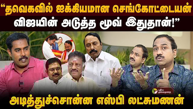 முன்னாள் அமைச்சர் செங்கோட்டையன் தவெகவில் இன்று தன்னை இணைத்துக் கொண்டார். இது அதிமுகவில் எத்தகைய தாக்கத்தை ஏற்படுத்தும், தவெகவுக்கு எத்தகைய பலனை தரும் என்பது குறித்து மூத்த பத்திரிக்கையாளர் எஸ்.பி.லட்சுமணன் விரிவாக பேசியுள்ளார்.