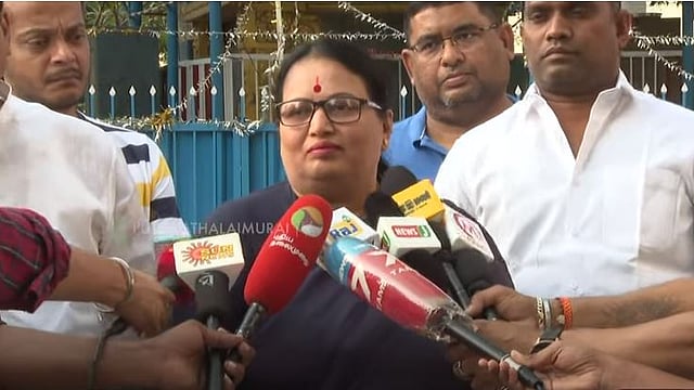 ”நான் உங்க புரட்சி தலைவி ஜெ. ஜெலலிதாவின் மகள் ஜெ.ஜெயலஷ்மி. நான் எம்ஜியார் அம்மாதிராவிட முன்னேற்ற கழகம் என்ற புதுகட்சியை துவங்கியுள்ளேன். அதை பதிவுசெய்வதற்காக டெல்லி வந்துள்ளேன். என் அம்மாவின் கட்சியான இரட்டை இலை கட்சியை 4 ஆக பிரித்து ஒருவர்கொருவர் அடித்துக்கொண்டு, அம்மாவின் பெயரை கெடுத்து வருகின்றனர். ஆகவே இரட்டை இலை கட்சியை திரும்ப பெறவும், எங்கம்மாவின் சொத்தை திரும்ப வாங்கவும் நான் வழக்கு பதிவு செய்ய நினைத்துள்ளேன்.