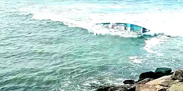 மீன்பிடித்து விட்டு துறைமுகத்துக்குள் நுழையும்போது கட்டுப்பாட்டை இழந்து நாட்டு படகு கவிழ்ந்த நிலையில், படகில் இருந்த மூன்று மீனவர்கள் நல்வாய்ப்பாக உயிர் தப்பினர். இந்த விபத்து தொடர்பாக வீடியோ சமூக வலைதளங்களில் வைரலாகி வருகிறது.