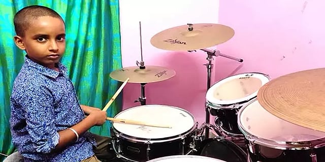 மதுரை கோசாகுளம் பகுதியைச் சேர்ந்த தமிழ்மணி, ராஜலட்சுமி தம்பதியின் மகன் ப்ரணவ் (7). இந்த சிறுவன் சிறு வயது முதலே இசை மீது அதிக ஆர்வம் கொண்டதால், தனது மூன்று வயதிலிருந்தே டிரம்ஸ், பியானோ, கர்நாடிக் இசை, பறை உள்ளிட்டவைகளை முறைப்படி பயின்று வருகிறார்.