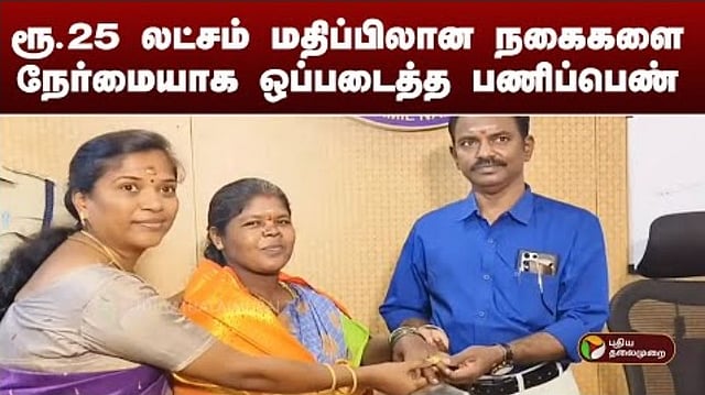 சென்னை அயப்பாக்கத்தில் உள்ள திருமண மண்டபத்தில் தவறவிட்ட ரூ.25 லட்சம் மதிப்பிலான வைரம் மற்றும் தங்க நகைகளை பத்திரமாக ஒப்படைத்த பணிப்பெண்ணுக்கு 4 கிராம் தங்க மோதிரம் பரிசாக வழங்கப்பட்டுள்ளது. நடந்தது என்ன விரிவாக பார்க்கலாம்...