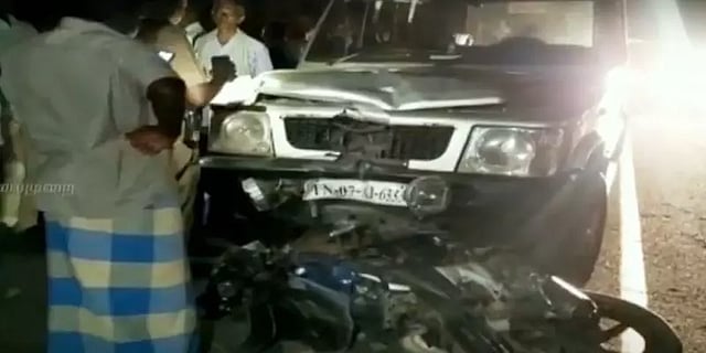 விழுப்புரம் மாவட்டம் திண்டிவனத்தை அடுத்த பெரமண்டூர் பகுதியை சேர்ந்தவர் தர்மராஜ். இவர் கோபாலபுரத்தில் உள்ள தனது வயல் வெளியை பார்வையிட்டு விட்டு புதுச்சேரி தேசிய நெடுஞ்சாலை வழியாக வீட்டுக்கு இருச்சக்கர வாகனத்தில் சென்றுள்ளார். அப்போது புதுச்சேரியிலிருந்து திண்டிவனம் நோக்கி வந்த போலீஸ் கார் ஒன்று கோபாலபுரம் தேசிய நெடுஞ்சாலையில் இருசக்கர வாகனத்தின் மீது பின்பக்கமாக மோதி விபத்தை ஏற்படுத்தியது.