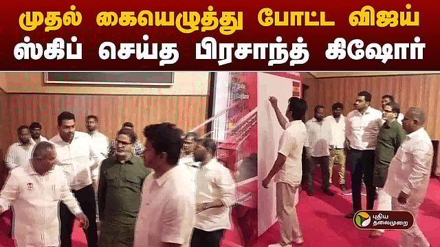 இந்த பேனரில்தான், முதல் கையெழுத்திட்டு கையெழுத்து இயக்கத்தை விஜய் தொடங்கி வைத்தார். அவரைத் தொடர்ந்து பொதுச் செயலாளர் ஆனந்த் கையெழுத்திட்டார். அதன்பின் பிரசாந்த் கிஷோரிடம் கையெழுத்திட கேட்கப்பட்டது. ஆனால், பிரசாந்த் கிஷோர் கையெழுத்திட மறுத்துவிட்டார். முன்னதாக, அந்தக் கையெழுத்து இயக்கம் குறித்து பிரசாந்த் கிஷோருக்கு ஆதவ் அர்ஜுனா விளக்கம் அளித்தார். அதன்பின்னும் ஆனந்த் கையெழுத்திட கேட்டும் பிரசாந்த் கிஷோர் மறுப்பு தெரிவித்தார்.
