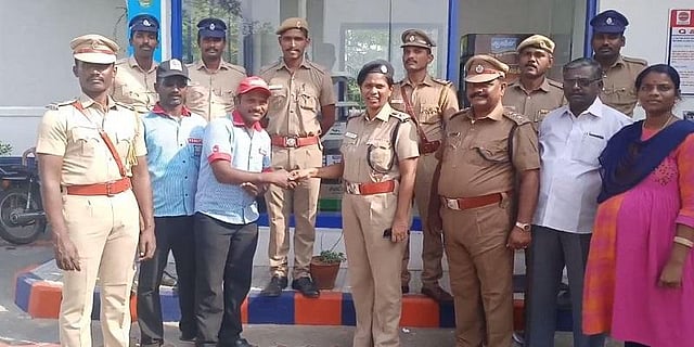 இந்த பெட்ரோல் பங்கில் நேற்று முன்தினம் 10ம் தேதி பரம்பபூரைச் சேர்ந்த ஜானகிராமன் என்பவர் தனது இருசக்கர வாகனத்திற்கு பெட்ரோல் போட வந்த போது ரூபாய் 1.74 லட்சத்தை பெட்ரோல் பங்கிலேயை வைத்து விட்டு சென்றுள்ளார். இதனை கண்ட அங்கு பணிபுரிந்து வரும் ஆயுள் தண்டனை கைதிகளான கார்த்திக், புஷ்பராஜ் ஆகியோர் அந்த பணத்தை எடுத்து மாவட்ட சிறை கண்காணிப்பாளர் ருக்மணி பிரியதர்ஷினியிடம் ஒப்படைத்தனர்.