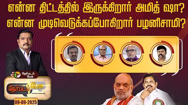 இன்றைய நேர்ப்பட பேசு நிகழ்ச்சியில், “என்ன திட்டத்தில் இருக்கிறார் அமித் ஷா? என்ன முடிவெடுக்கப்போகிறார் பழனிசாமி? டெல்லியில் அமித் ஷாவைச் சந்தித்த செங்கோட்டையன்..” எனும் தலைப்பில் விவாதிக்கப்பட்டது.