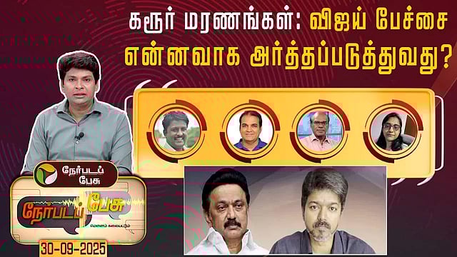 இன்றைய நேர்ப்பட பேசு விவாத நிகழ்ச்சியில், உங்களுக்கு பழி வாங்கும் எண்ணம் இருந்தால் என்னை என்ன வேண்டுமானலும் செய்யுங்கள் என விஜய் தெரிவித்ததும், விஜயின் அத்தனை குற்றச்சாட்டுகளையும் தமிழக அரசு மறுப்பது குறித்தும் விவாதிக்கப்பட்டது.