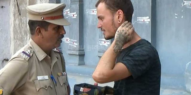 காஞ்சிபுரத்தில் குமரக்கோட்டம் முருகன் கோயிலின் வாயிலில் நின்று ரஷ்ய இளைஞர் ஒருவர் யாசகம் கேட்டதால் பொதுமக்கள் அதிர்ச்சி அடைந்தனர்.