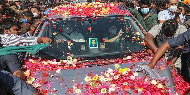சொத்துக்குவிப்பு வழக்கில் சிறைவாசம் முடிந்து விடுதலையான சசிகலா பெங்களூருவில் இருந்து கார் மூலமாக சென்னை சென்றார். வரும் வழி முழுவதும் கட்சியினர் வழங்கும் வரவேற்பை ஏற்றுக்கொண்டு வந்த அவர், நேற்று காலை பெங்களூருவில் இருந்து கிளம்பி சென்னை மாநகர போலீசின் தொடக்க எல்லையான பழஞ்சூர் பகுதியில் சசிகலாவின் வாகனம் நுழைந்தது. அப்போது அவரது வாகனம் மற்றும் அவரைத் தொடர்ந்து வந்த 10 வாகனங்கள் மட்டும் சென்னைக்குள் வர அனுமதி அளித்தனர். பின்னர் நசரத்பேட்டை, குமணன்சாவடி, போரூர் ஆகிய பகுதிகளில் மேம்பாலங்களின் மேல் இருந்து சசிகலாவின் ஆதரவாளர்கள் பூக்கள் தூவியும் மேளங்கள் வாசித்தும் வரவேற்பு அளித்தனர்.