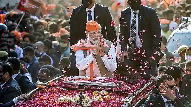 அதன்படி, இன்று (ஜனவரி 23) மதியம் தமிழகம் வரும் பிரதமர் மோடி, செங்கல்பட்டு மாவட்டம் மதுராந்தகத்தில் 3 மணியளவில் நடைபெறும் பொதுக்கூட்டத்தில் பங்கேற்று உரையாற்றவுள்ளார். முக்கியத்துவம் வாய்ந்ததாக கருதப்படும் இந்தப் பொதுகூட்டத்தில் தேசிய ஜனநாயக் கூட்டணியில் இடம்பெற்றுள்ள கூட்டணிக்கட்சிகளின் தலைவர்கள் படம் இடம்பெற்றுள்ளது. மேலும், இந்தப் பொதுக்கூட்டத்தை முன்னிட்டு, மதுராந்தகத்தில் 7 அடுக்கு பாதுகாப்பு மற்றும் பிரமாண்ட ஏற்பாடுகள் செய்யப்பட்டுள்ளன. திருச்சி - சென்னை தேசிய நெடுஞ்சாலையை ஒட்டி சுமார் 35 ஏக்கர் பரப்பளவில் பிரமாண்டமான பந்தல் மற்றும் பொதுக்கூட்ட மேடை அமைக்கப்பட்டுள்ளது. பிரதமர் மோடியை வரவேற்பதற்காக சுமார் 20 கிலோ மீட்டர் தூரத்திற்கு கூட்டணி கட்சிகளின் கொடிகள் மற்றும் பேனர்கள், கட்-அவுட்கள் வைக்கப்பட்டு, மதுராந்தகம் நகரமே விழாக்கோலம் பூண்டுள்ளது.