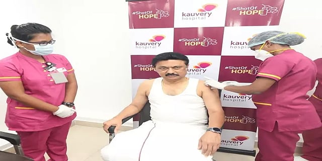 திமுக தலைவர் ஸ்டாலின் கொரோனா தடுப்பூசி போட்டுக்கொண்டார்.