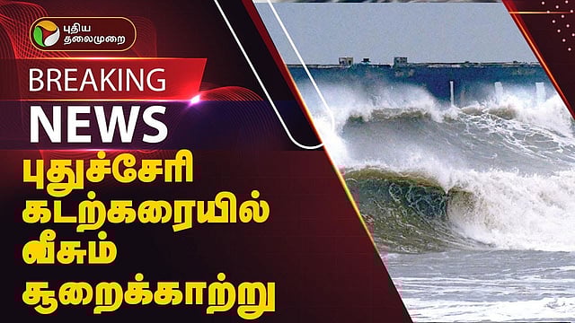 ஃபெஞ்சல் புயல் காரணமாக, புதுச்சேரி கடற்கரையில் சூறைக்காற்று வீசுகிறது.