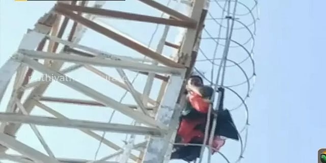 ஆனால் இது தொடர்பாக நடவடிக்கை எடுக்கவில்லை எனக்கூறி செல்போன் டவர் மீது ஏறி அபிதா போராட்டம் நடத்தினர். தகவலறிந்து சம்பவ இடத்துக்கு வந்த காவல்துறையினர் ஐந்து மணி நேரமாக பேச்சுவார்த்தை நடத்தியபின்னர் அவர் செல்போன் டவரிலிருந்து கீழே இறங்கினார்.
