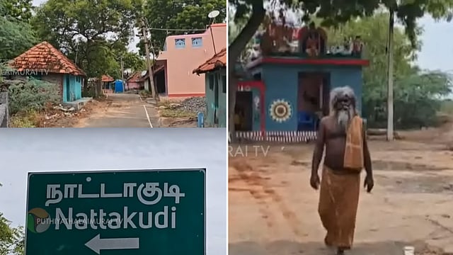 கிராமத்தின் அழகை ரசிக்கும் நமக்கு, உள்ளுக்குள்ளே நடுக்கமும் தோன்றுகிறது. காரணம், நாட்டாகுடிகிராமத்தின் அத்தனை வீட்டிலும் இப்போது யாரும் வசிக்கவில்லை. ஜடைவிழுந்த முடியுடன் காணப்படும் ஒரே ஒருமுதியவர் மட்டும் அங்கே வசிக்கிறார். நாட்டாகுடியில் உள்ள மாரியம்மன்கோயில் பூசாரி தங்கராஜ் தான்அவர். ஊரே வெறிச்சோடி, வீடுகள்அனைத்தும் அனாதையாக கிடக்க என்ன காரணம் என்று விசாரித்தோம்.