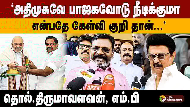 "அதிமுகவே பாஜகவோடு நீடிக்குமா என்பதே கேள்வி குறி தான்..." என்று விசிக தலைவர் தொல்.திருமாவளவன் தெரிவித்துள்ளார். அவர் அளித்துள்ள பேட்டியை இங்கே காணலாம்.