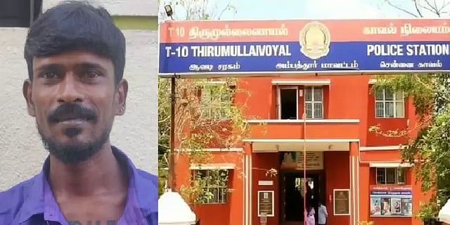 சென்னை திருமுல்லைவாயில் அருகே அயப்பாக்கத்தில் பாக்கியராஜன் என்ற இளைஞர் மது அருந்திக்கொண்டிருந்திருக்கிறார். அப்போது வாகன தணிக்கையின்போது ரோந்து வந்த போலீசார் பாக்கியராஜனை அழைத்து விசாரித்திருக்கின்றனர். விசாரித்துக் கொண்டிருக்கும்போதே பாட்டிலை உடைத்த பாக்கியராஜன் தனது கழுத்தை அறுத்துக்கொண்டார். இதனால், அந்த இடத்தில் பரபரப்பு ஏற்பட்டது.